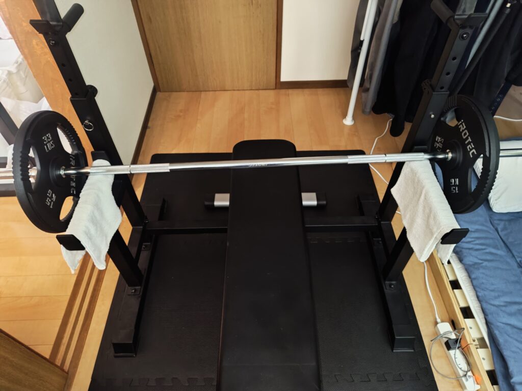 13:00から筋トレをするためのラックやプレートの準備をしました。